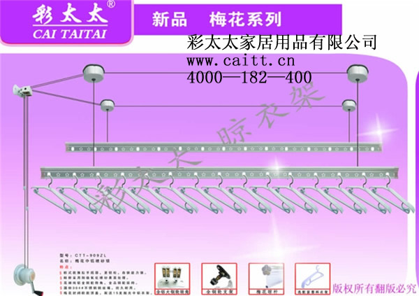 晾衣架品牌教你電動(dòng)衣架的一些知識(shí),目前我們很對(duì)人也許都會(huì)說(shuō)自己使用電動(dòng)晾衣架了,現(xiàn)在我們的日子中到處到能學(xué)到新鮮的學(xué)問(wèn),當(dāng)然晾衣架品牌中的電動(dòng)晾衣架同樣也能帶給我們一些新的知識(shí),在電動(dòng)晾衣架供我們晾曬衣物的同時(shí)給怎樣正確的運(yùn)用它,同時(shí)他在使用的時(shí)候要注意的一些小問(wèn)題都有哪些呢,那我們的彩太太晾衣架品牌就為你詳細(xì)的解答,首先當(dāng)然是我們的衣物要清洗的干凈為前提了,準(zhǔn)確的晾曬也是必不可少的步驟,要保證一次曬的衣物不要太多,同時(shí)要對(duì)衣物的材質(zhì)進(jìn)行仔細(xì)的分類(lèi),在者就是對(duì)顏色的晾曬搭配上要讓我們能舒服等等。